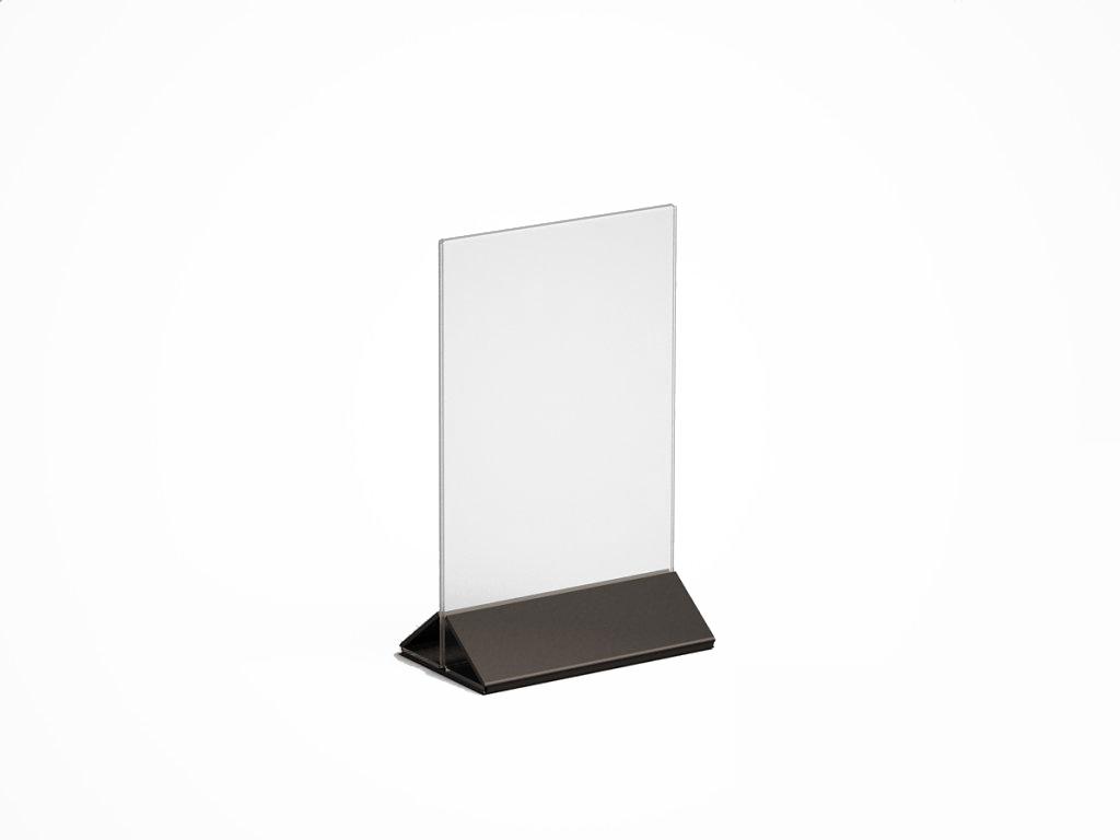 МЕНЮХОЛДЕР ФОРМАТА А-5, С НИЖНЕЙ ЧАСТЬЮ РАЗЛИЧНЫХ ЦВЕТОВ, КЛАСИЧЕСКОГО ВИДА. СОСТОИТ ИЗ ДВУХ ЧАСТЕЙ, ПРОЗРАЧНОГО ПЛАНШЕТА И НИЖНЕГО ДЕРЖАТЕЛЯ, ТРЕУГОЛЬНОЙ ФОРМЫ. ПОДХОДЯЩИЕ ИЗДЕЛИЕ, ПРИ НЕОБХОДИМОСТИ ПО ОСОБЕННОМУ ВЫДЕЛИТЬ ИНФОРМАЦИЮ. ПЛАНШЕТ ВСТАВЛЯЕТСЯ В ДЕРЖАТЕЛЬ С ВЕРХУ.