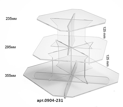 Квадратная витрина для различных товаров. Материал изготовления, оргстекло пять миллиметров, лазерная обработка материала. Эффективно выделяет товары, расположенные на витрине. Возможно изготовление в различной цветовой гамме.