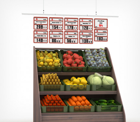 Кассета цен VISTA - наборный ценникодержатель формата А5+  для крупной презентации цен на товары, представленные в торговом зале вне полочных выкладок. Используется в подвесных системах, напольных стойках, на корзинах и ящиках в зоне выкладки овощей и фруктов. К кассете цен VISTA подходит вся рамочная фурнитура. В комплект входят блокноты цифр для набора цен, которые обеспечивают быструю и легкую смену цен так часто, как вам захочется.