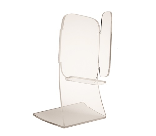 Оригинальная подставка под телефон. Возможность выделить особую линейку товаров. Перед подставкой удобно разместить ценникодержатель. с информацией о товаре.