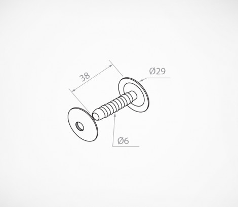 Большой квик-замок для отверстий Ø от 5 мм. Увеличенная шляпка предназначена для надёжного соединения листового материала, пластика, картона. Ø шляпки - 29 мм. Длина - 38 мм.