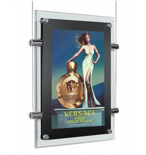 Световая панель подвесная «Кристалл»  для вставки информации форматом А-1. Панель изготовлена из оргстекла, защитного поликарбоната с нанесением  специальной рассеивающей сетки.  Панель комплектуется блоком питания 26 ВТ,  токопроводящим  тросом, два троса по 2 метра.  Так же в комплект входят потолочные крепления.  Для транспортировки, панель упакована в индивидуальную упаковку.